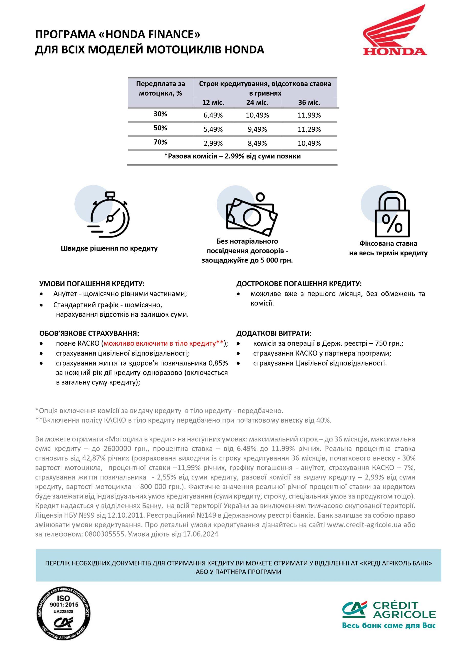 41Мотоцикл в кредит – це реальна можливість користуватися автомобілем вже сьогодні, при цьому сплачувати вартість його частинами (щомісячний платіж) протягом зручного для Вас періоду часу (згідно з обраною програмою кредитування).