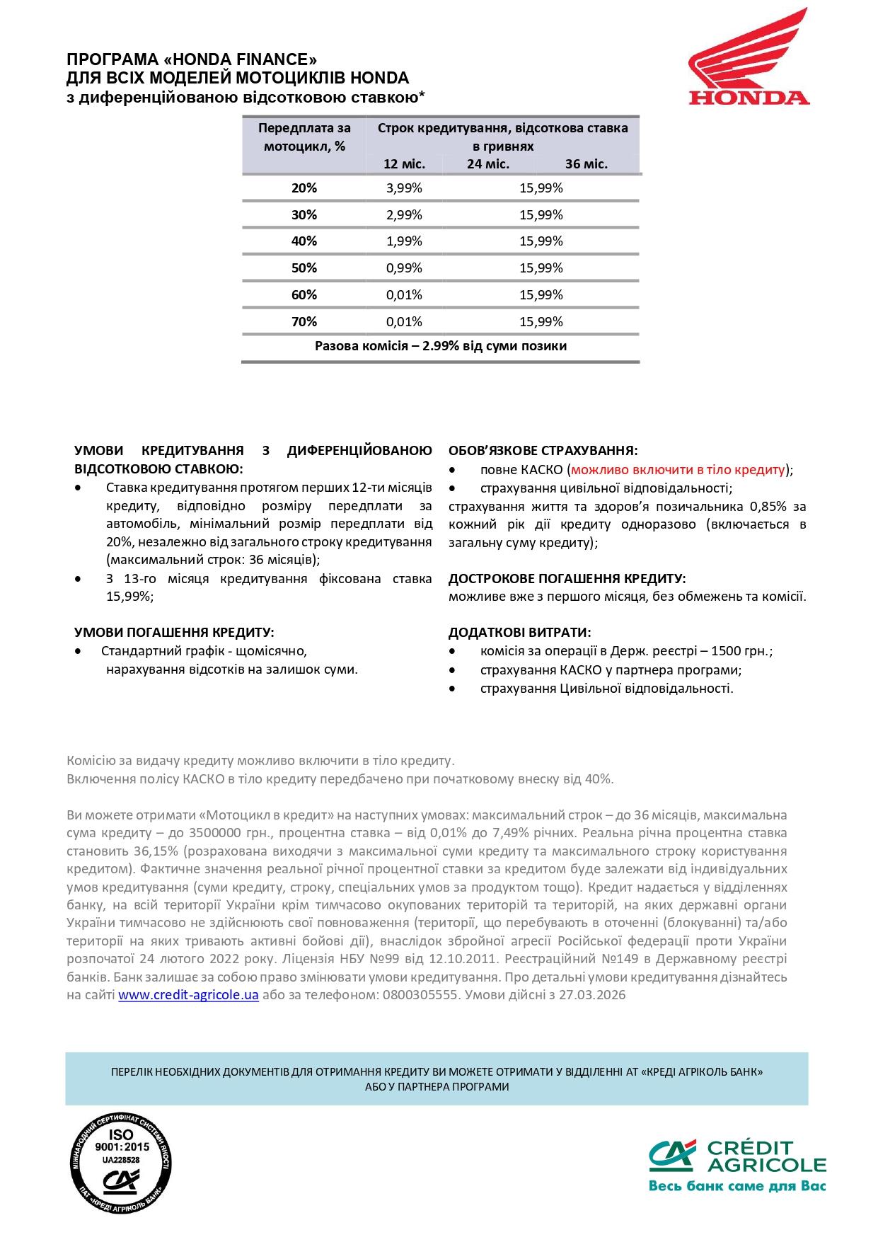 Спеціальні умови кредитування від КРЕДІ АГРІКОЛЬ Банк