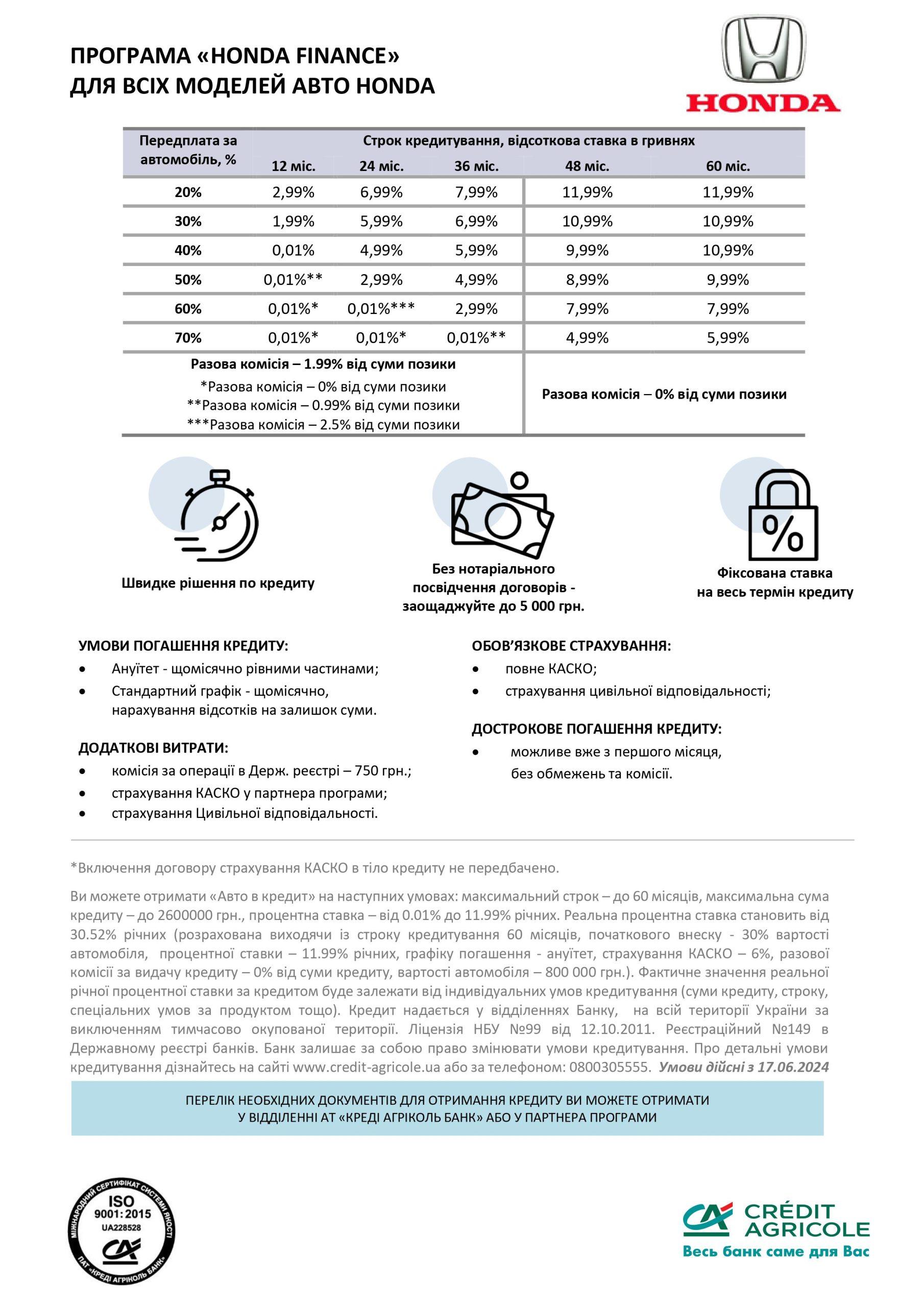 Для отримання кредиту необхідно врахувати всі ризики та умови кредитування. Зверніть увагу на наявність додаткових витрат і можливих санкцій у разі невиконання умов договору. Детальніше за посиланням: Попередження.