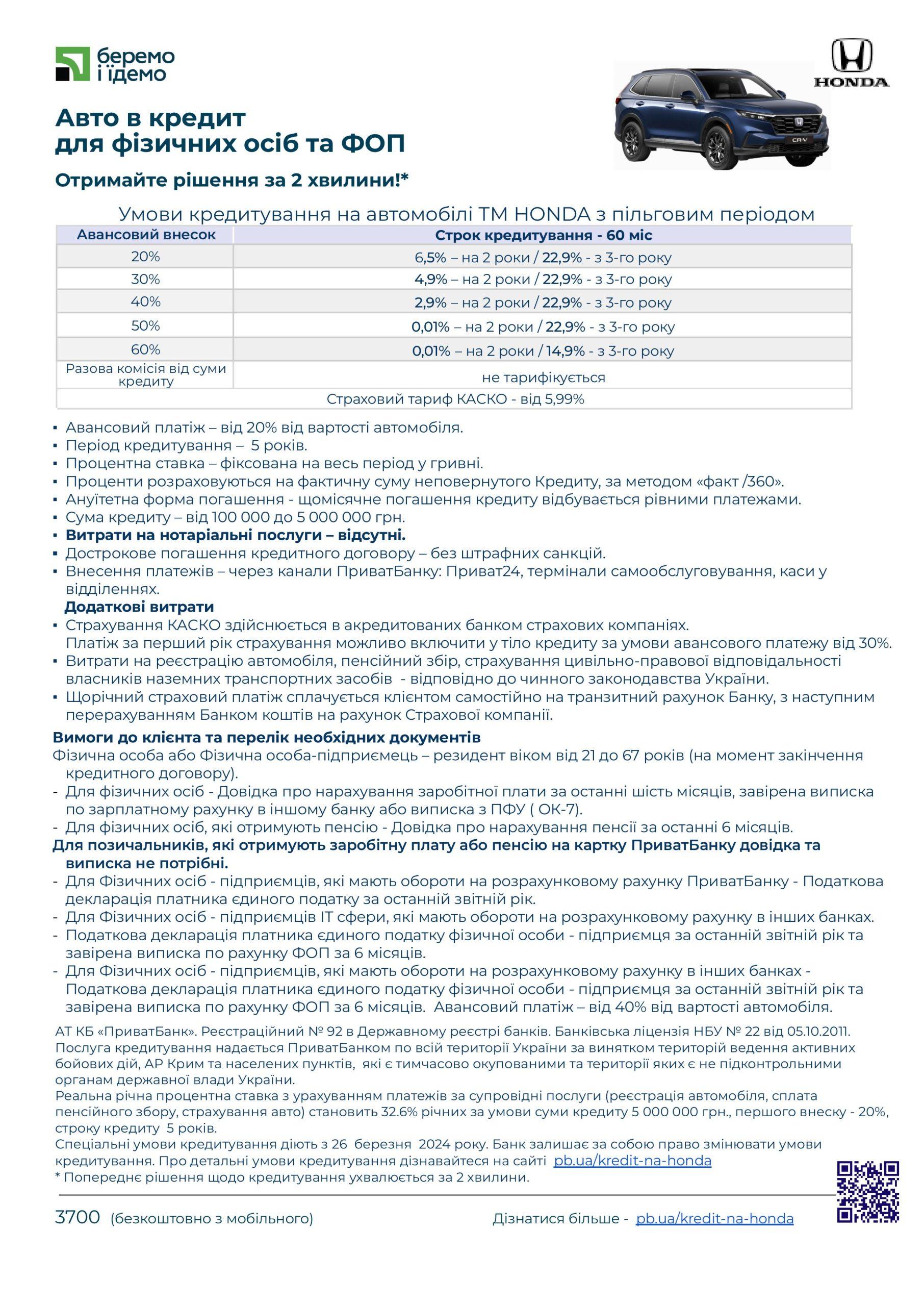 Цей документ містить ключові умови надання кредиту, включаючи відсоткові ставки, терміни погашення, можливі штрафи та інші важливі параметри. Ознайомтеся з повною інформацією тут: Істотні характеристики послуги.